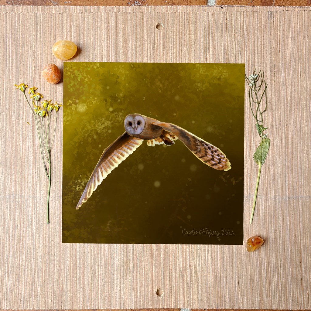 10″W x 8″H oil painting on linen, 6″x9″ square print