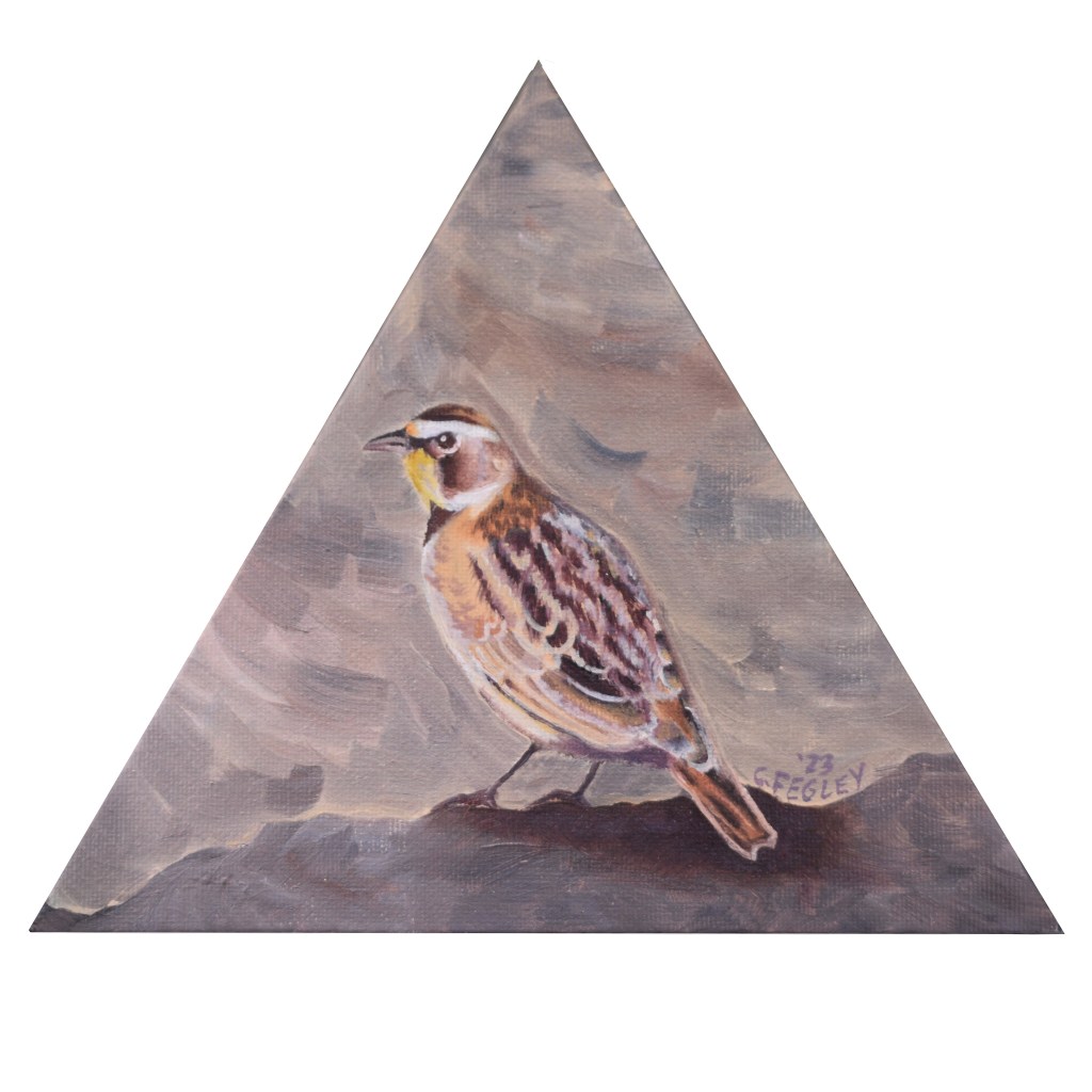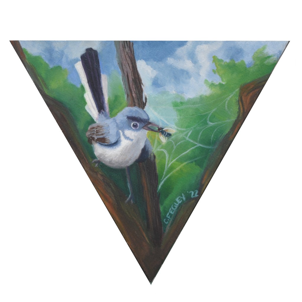 8″ triangular oil painting on canvas, 8″x8″ square print